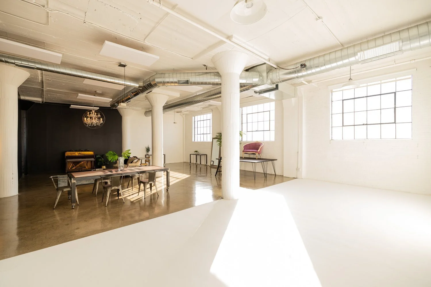 Studio Elevn | SLCLarge space that can fit up to 2 simultaneous product/beauty photography setups. Large tables and seating are available for makeup and hair, seating, food table, etc.
